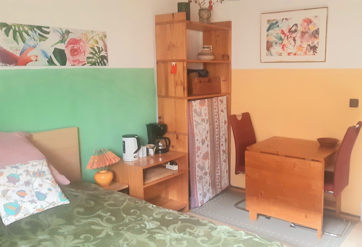 Diese kleine aber feine separate Wohnung bietet alles was Sie benötigen. Ein Wohnraum mit einem großen Bett, Fernseher, Schrank, Couch, Arbeitsplatz, WLAN-Anschluss usw. Die Küchenzeile ist voll ausgestattet. Natürlich bekommen Sie fürs Bad frische Handtücher, wann immer Sie nachfragen. Waschmaschine ist im Badezimmer vorhanden. Trockner und Trockenräume können mit benutzt werden. Zudem lädt unser großer Garten zum Ausruhen oder Grillen ein und ein eigener Parkplatz steht Ihnen zur Verfügung.