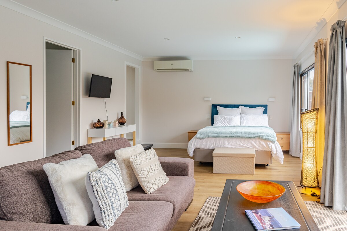 Bersantai di ruang yang tenang dan bergaya ini atau pergi merasai apa yang ditawarkan oleh Hawke's Bay. Berjalan-jalan ke pantai yang sesuai untuk memancing atau bersiar-siar ke kilang wain tempatan. Kurang daripada 10 minit ke Lapangan Terbang Hawke's Bay atau beberapa minit lagi ke bandar Art Deco Napier dengan kereta. Berhubung dengan beberapa laluan basikal atau laluan pejalan kaki yang menarik jika itu minat anda di pintu belakang kami.
