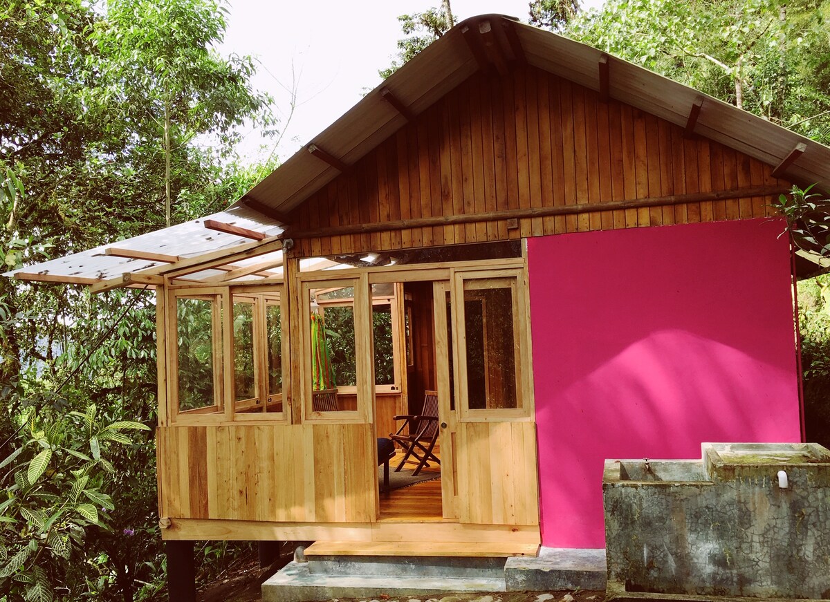 Bersantai di dalam rumah desa yang selesa di dalam rizab alam semula jadi. Rumah kami terletak di dalam kawasan perlindungan Mashpi. Anda akan dapat menikmati persekitaran semula jadi dengan sungai dan air terjun yang bersih, denai alam semula jadi, memerhati burung dari balkoni anda sendiri yang menghadap hutan. Rumah ini terdiri daripada dua bilik tidur dengan katil double, mezzanine dengan 1 katil single, 1 katil sofa dan 1 meja, ruang tamu, ruang makan, dapur dan dua balkoni.