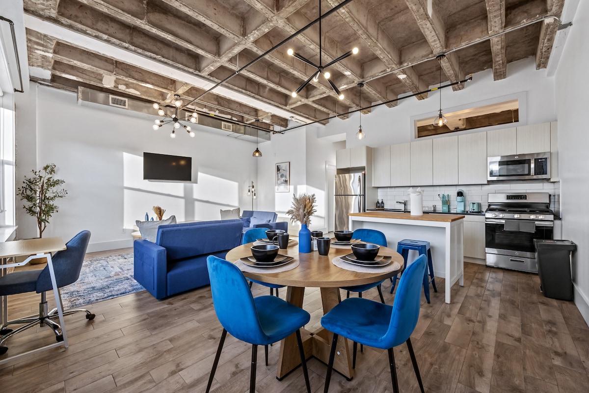 Selamat datang ke loteng "The Lofts at Kearny" -industrial-chic yang direka untuk kehidupan moden dan hanya berulang-alik singkat ke NYC! Loteng 3BR yang luas ini menempatkan hingga 8 tetamu dan menawarkan siling tinggi, susun atur terbuka, dan pesona industri yang bergaya. Di dalamnya, anda akan menemui meja kolam renang untuk keseronokan tambahan, bersama dengan faedah seperti patio berkongsi dengan gril BBQ, pusat kecergasan, dan kemudahan tempat letak kereta percuma. Terletak di kejiranan yang tenang, loteng ini menggabungkan kehidupan yang damai dengan akses mudah kepada tenaga bandar.