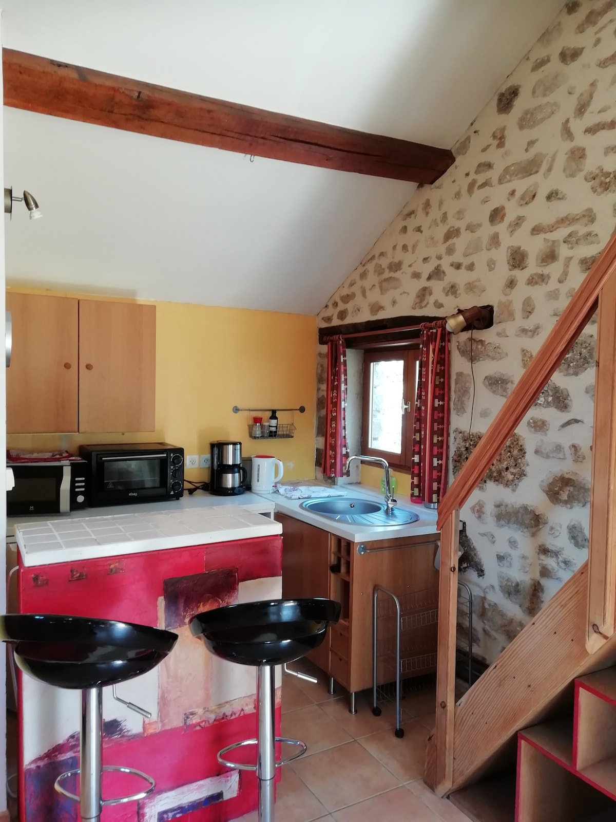 Studio di satu tingkat 35 M² dalam keadaan sempurna, bebas sepenuhnya, dipasang di rumah ladang lama. Bilik mezzanine besar dengan 1 katil berkualiti tinggi, untuk 2 orang. Dapur kecil, ketuhar, ketuhar gelombang mikro, peti sejuk, ... Bilik pancuran mandi dan tandas. Tingkat atas, bilik tidur dengan katil 2 orang di bawah bumbung. Pemanas dikuasakan oleh Pac. Persekitaran, sangat tenang dan menyenangkan. Bertukar pada 3km tetapi pasar raya autonomi. Sesuai untuk penginapan pelancong atau untuk perjalanan perniagaan