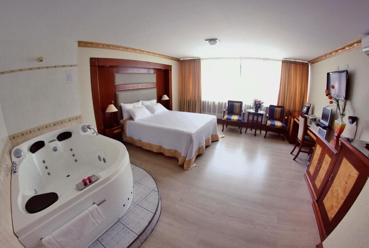Suite Junior yang luas dan moden dengan katil King di Hotel Carrera kami, yang terletak di daerah Lince, berhampiran pusat kewangan San Isidro. Datang melawat kami dan nikmati penginapan 4 bintang kami di tengah-tengah Lima, di mana anda akan menemui semua yang anda perlukan untuk berasa selesa! Tidak kira jika anda mengembara untuk perniagaan, meneroka negara dan bandar kami yang indah!