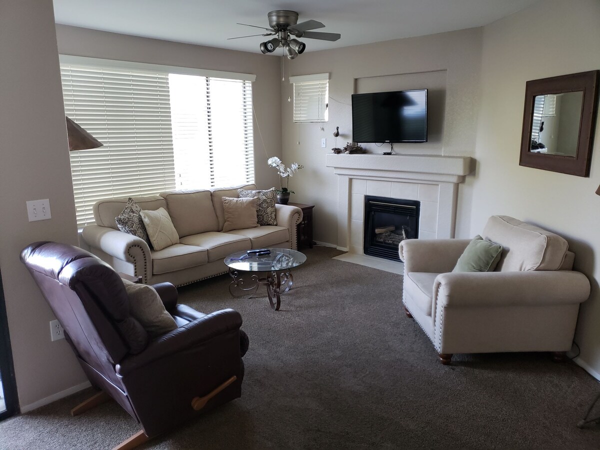 Rumah 4 bilik tidur, 2 bilik air ini, terletak di Estrella Mountain Ranch. Halaman belakang: tab mandi air panas 5 orang, 4tv, barbeku gas Webber, ciri air, set makan serta halaman tambahan yang mencukupi. Rumah seluas 2450 kaki persegi dengan lantai kayu, penutup ladang, reka bentuk terbuka dengan ruang tamu, ruang tamu, dapur & ruang makan yang besar. Bilik tidur utama mempunyai bilik mandi ensuite dengan dua sinki, tab mandi rendaman, pancuran mandi berasingan, almari air persendirian dan almari besar. 2 kolam air panas jenis resort. Pematuhan semua STR0000134 tempatan