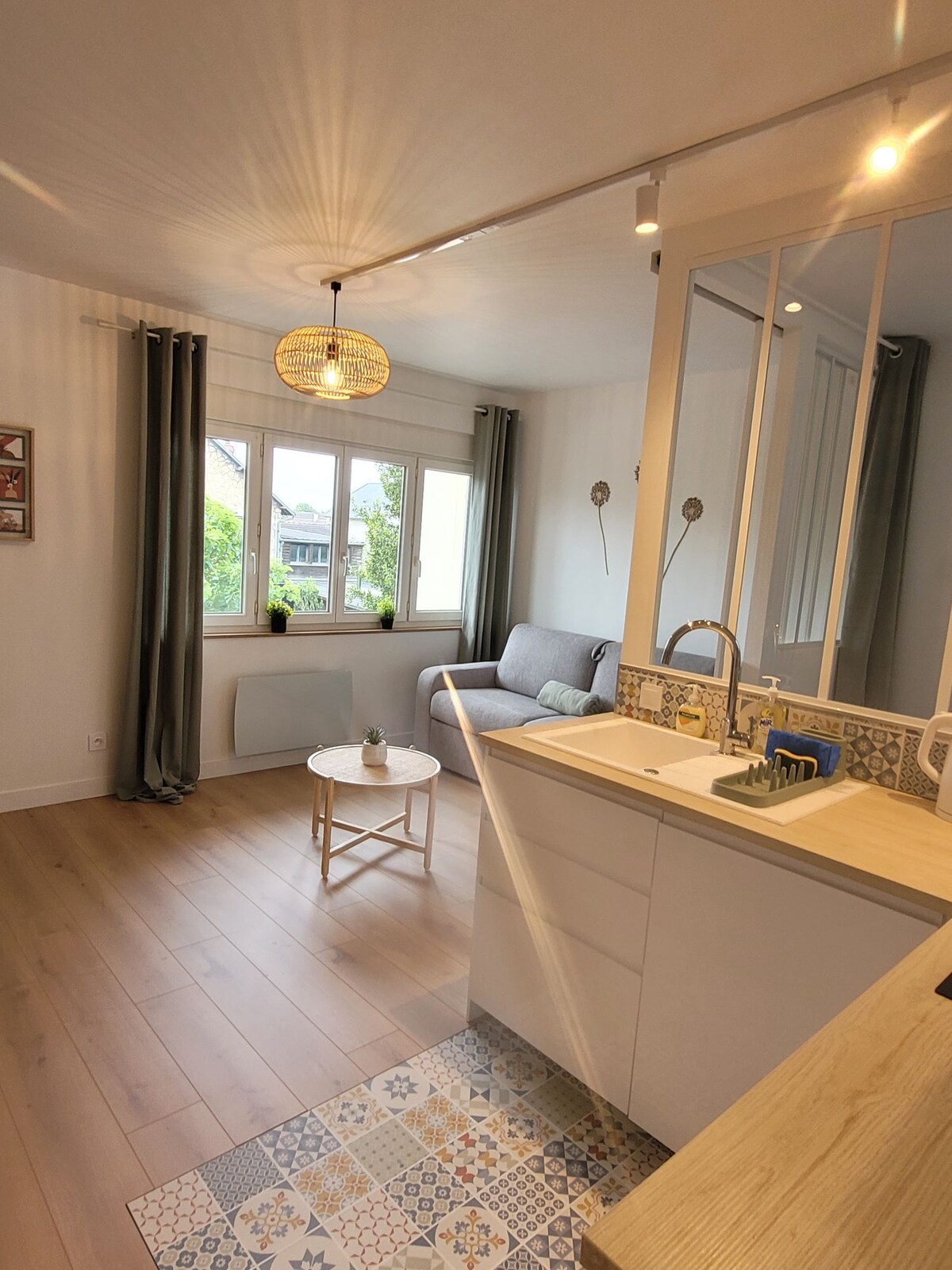 Apartmen yang diperbaharui seluas 47m2 di tingkat 1 (lif), dengan ruang letak kereta bawah tanah. - Bilik tidur dengan bilik persalinan dan kawasan meja. - Ruang tamu besar dengan ruang makan (meja besar + 4 kerusi) dan ruang rehat dengan katil sofa. - Dapur terbuka (peti sejuk/pembeku, mesin basuh pinggan mangkuk, ketuhar, ketuhar gelombang mikro, hob induksi, hud pengekstrak, pembuat kopi, cerek, pembakar roti). - Bilik mandi dengan pancuran mandi, meja solek berganda, mesin basuh, pengering rambut. - Tandas berasingan.