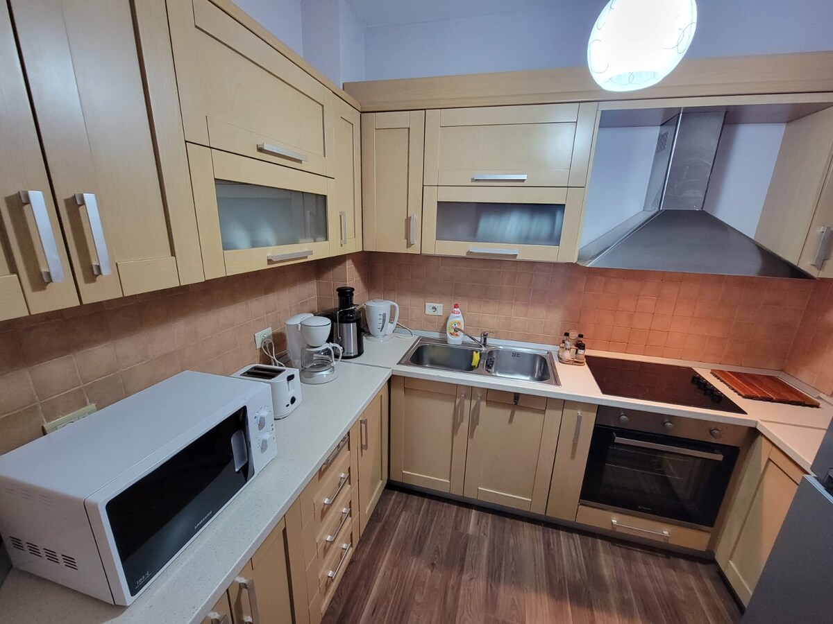 Terletak di tengah-tengah kejiranan Blloku Tirana, apartmen tingkat atas yang elegan ini menawarkan ketenangan dan kemudahan. Nikmati tab mandi santai, dapur lengkap dengan mesin pencuci pinggan dan teres besar dengan pemandangan bandar. Bersantai di katil bersaiz queen dengan penyaman udara di kedua-dua bilik. Kemudahan berhampiran termasuk stesen bas, tempat letak kereta berbayar, gimnasium, pasar raya, Tirana Lake, semuanya dalam jarak 10 minit berjalan kaki. Sesuai untuk sehingga tiga tetamu. Tempah sekarang untuk penginapan yang tidak dapat dilupakan!