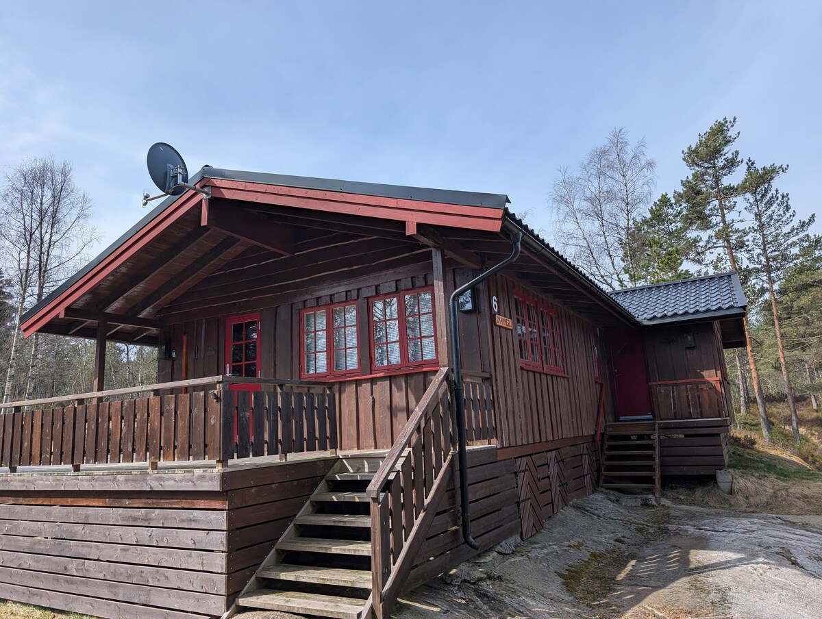 Kabin selesa di tempat yang damai. Sesuai untuk orang dewasa dan keluarga yang sukakan alam semula jadi. Beberapa destinasi pendakian yang bagus di kawasan ini, dan hutan ini penuh dengan buah beri pada musimnya. Jarak berjalan kaki ke tasik, dengan kawasan renang yang sesuai untuk kanak-kanak. Kanu tersedia untuk penyewa. Kira-kira 20 minit untuk memandu ke pusat bandar Evje. Lebih dekat ke Mineralparken, Hutan pendakian dan trek go-kart. Selamat datang ke hari cuti yang menyeronokkan di mana anda boleh berehat dan benar-benar melupakan segala-galanya! Kami mahu penyewa yang tenang, bukan parti dan bising.