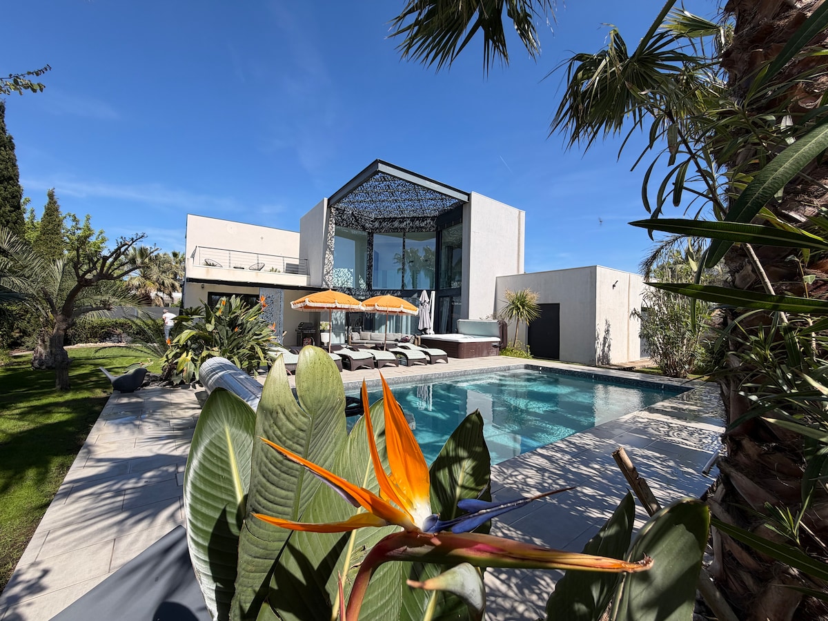 Villa Paloma 8p kolam renang SPA Cap d'Agde Pantai Laut