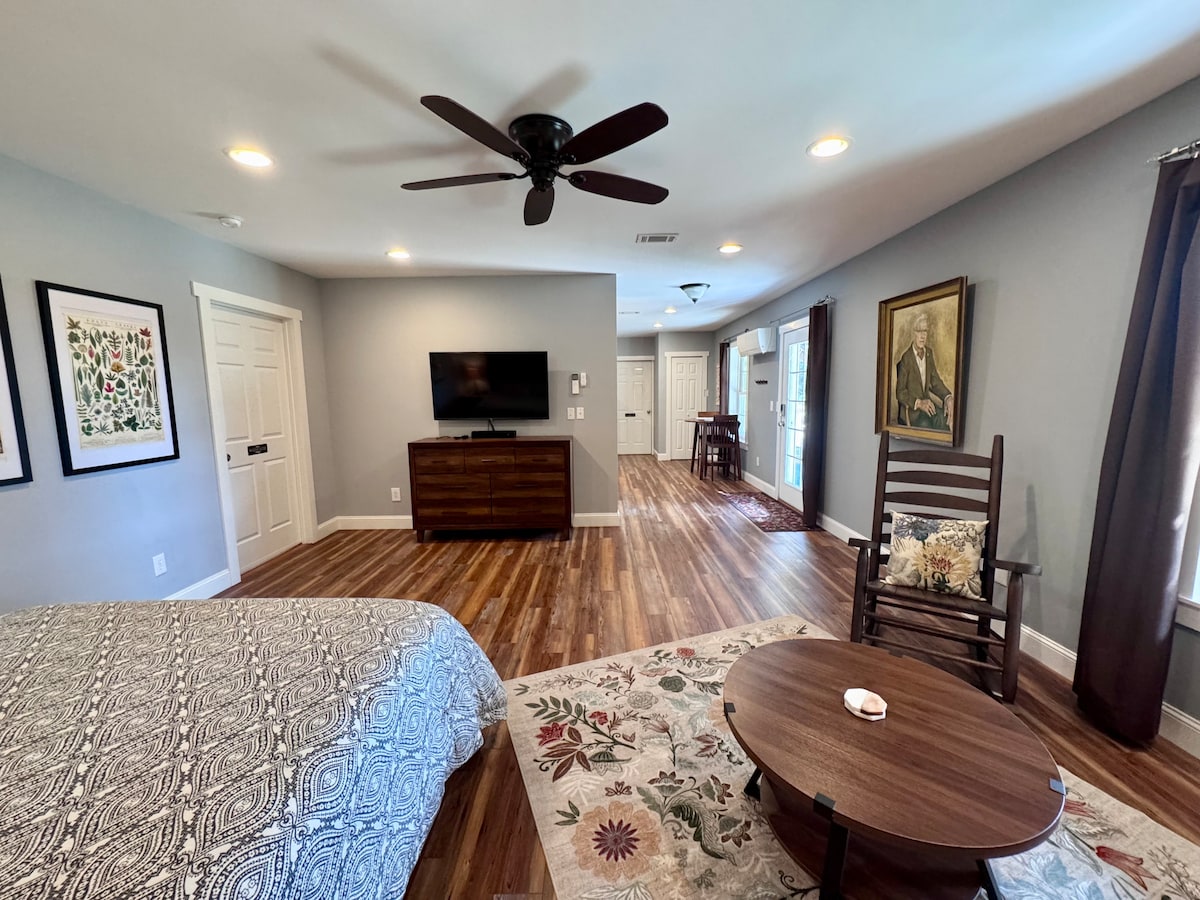 Bersantai dan bernafas di tempat percutian spa gunung pasangan kami. Atrium House telah direka untuk berasa terbuka kepada persekitaran gunung yang indah namun membolehkan anda berehat dalam privasi. Tab mandi air panas terapi luaran kami, pendiangan gas dalaman/luaran, dan pancuran mandian dua orang dan berjalan kaki yang luas menjadikan percutian begitu tenang, anda mungkin tidak akan sampai ke Asheville yang berdekatan! Kami berada di dalam negara tetapi hanya lebih 15 minit memandu dari pusat bandar Asheville, Biltmore, Hendersonville, Lapangan Terbang Asheville, dan berpuluh-puluh kilang bir.