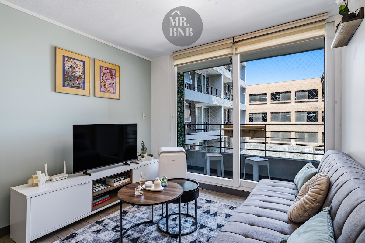 Nikmati kesederhanaan apartmen ini. 🎵 Nikmati pengalaman bandar beberapa langkah dari Movistar Arena | Depto 1D 1B dengan gaya unik. 🎨 Berehat di apartmen suite yang selesa dan moden ini, di tengah-tengah Santiago, sesuai untuk percutian, konsert atau perjalanan perniagaan. Terletak berhampiran dengan Movistar Arena dan kehidupan tempatan: restoran, pasar raya, kafe dan segala yang anda perlukan. 🚇 Hanya 10 minit berjalan kaki dari Metro. Kemungkinan tempat letak kereta dengan caj tambahan.