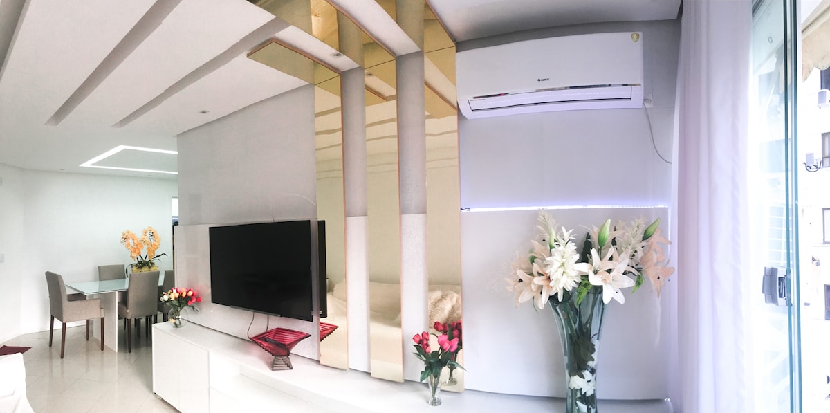 Studio yang elegan dan selesa di bangunan dengan struktur hotel: kolam renang dengan pemandangan panorama, gimnasium, penjaga pintu 24 jam dan banyak lagi. Persekitaran berhawa dingin, dengan katil kelamin, Wi-Fi, TV, dapur kecil yang dilengkapi dengan ketuhar gelombang mikro, peti sejuk, mesin pembuat kopi, pengisar, mesin pembuat sandwic dan dapur gas. Terletak di kawasan bangsawan Salvador, berhampiran pusat membeli-belah, restoran, pusat membeli-belah dan dengan akses mudah ke jalan utama. Sesuai untuk mereka yang mencari keselesaan, kepraktisan dan gaya dalam setiap perincian.