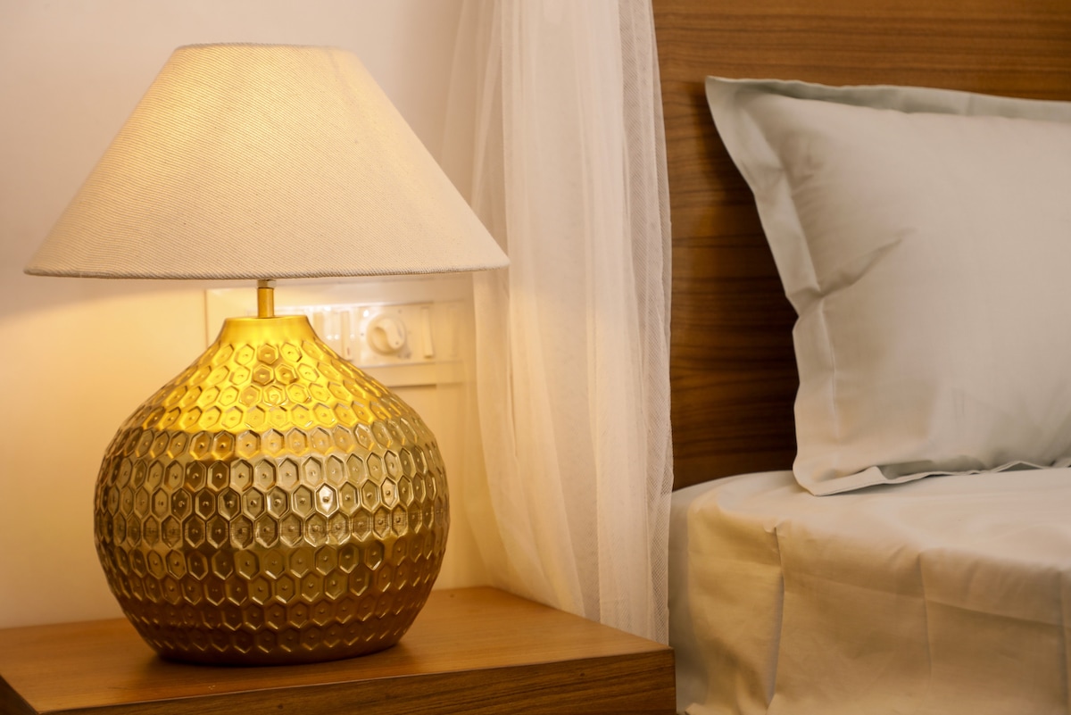Spacious 2BHK stay with a fully equipped kitchen, surrounded by nature and offering stunning mountain views — located in the heart of Nathdwara, just 1 km from the highway ❤️ Private Roof Access 🛣️ All major attractions within 15–20 minutes 🧴 Fresh Towels, Shampoo & Body Wash provided 🔌 Power Backup (Inverter) 🛡️ CCTV Cameras Installed 🧊 Refrigerator 🚰 RO Water Purifier 📶 Fast Wi-Fi Internet 🎬 Smart LED TV 👕 Washing Machine 🧼 Iron Available
