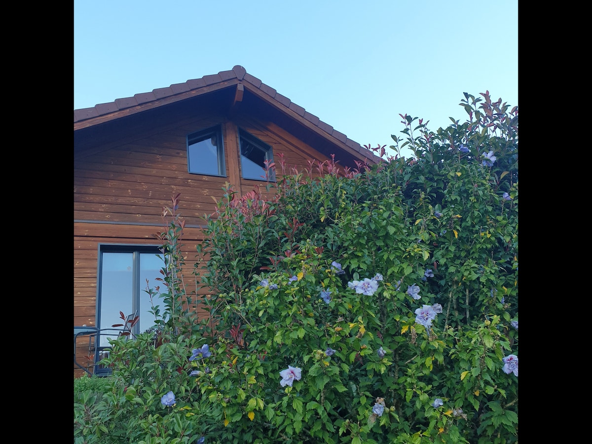 Chalet baru yang bagus, Semua kayu, selesa, hangat. Di atas plot besar 2500 m2 tidak terabai. 1.5 km dari pusat bandar. Teres besar 70 m2, Jakuzi luar tertutup 4-6 orang pemanasan bawah lantai, dapur pelet, pancuran mandi besar di 140. katil di 140 dan 160 + katil bayi di sudut kanak-kanak + Chalet kecil, kabin kanak-kanak, atau malam luar biasa, atau letakkan kenderaan 2 roda anda dengan selamat