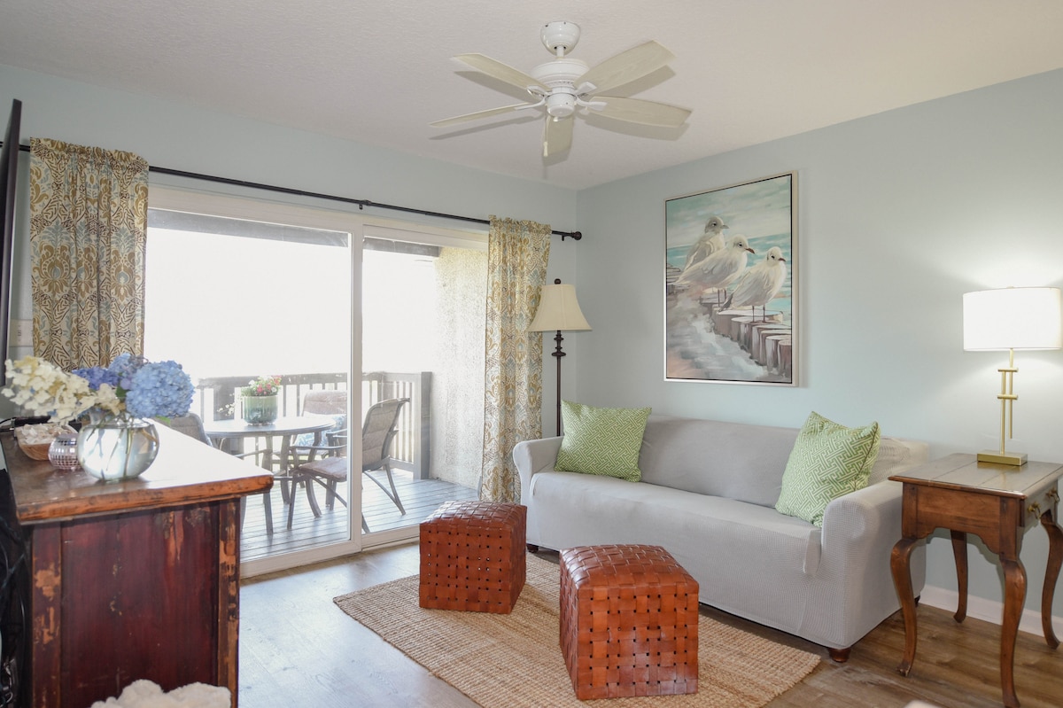 Kondominium yang diubahsuai sepenuhnya ini terletak di kompleks The Sandcastles di dalam Amelia Island Plantation. Ia mempunyai 1 bilik tidur, 1 bilik mandi, bilik fleksibel yang boleh digunakan sebagai pejabat atau ruang tidur dengan katil king trundle. Kayak tunggal & kereta golf gas disertakan untuk meneroka Drummond Park, Walker's Landing, Nature Center, mini golf, pelbagai kedai dan restoran semuanya di dalam Amelia Island Plantation. Lokasinya hebat, pemandangannya luar biasa dan merupakan ruang yang sangat selesa untuk pasangan, dan keluarga kecil!