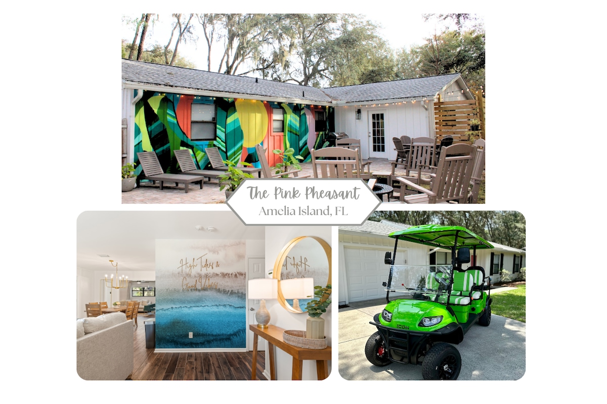 Golf Cart/Fire Pit! 5 min to Beach/DT! 4BR/2 Kings