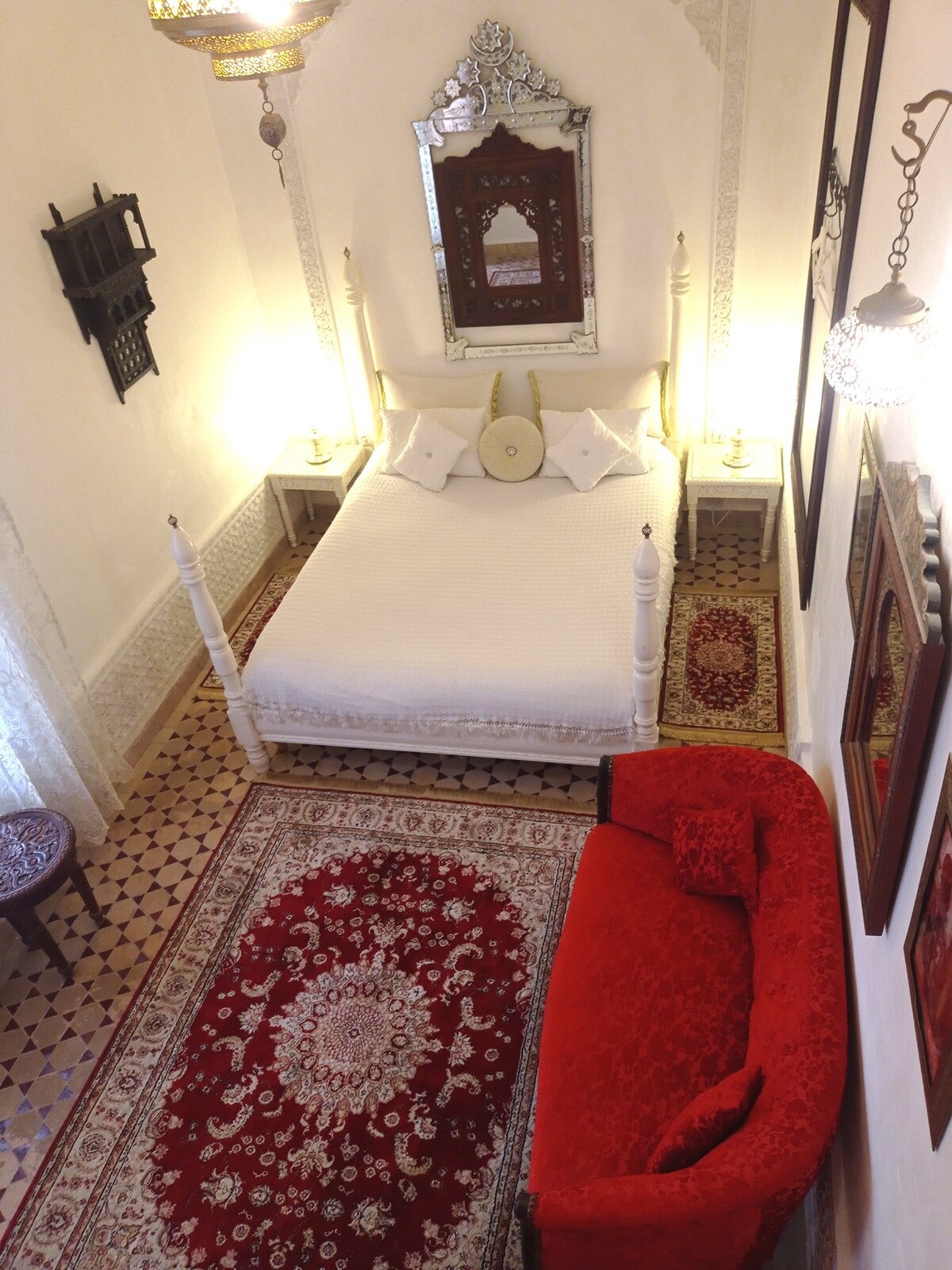 Suite cantik di RIAD DAR ARSAMA ini mengingatkan kepada istana 1001 Malam Sherezade. Kemewahan dan keselesaan bercampur dengan reka bentuk tradisional dan pencahayaan unik yang memberikan suasana romantik. Ia sesuai untuk pasangan, keluarga atau kumpulan rakan dengan 2 katil kelamin. Lokasi yang sangat baik, sarapan disediakan. Violeta dan Adil akan menjaga anda dan membantu anda dalam semua yang anda perlukan. Tinggal bersama kami!