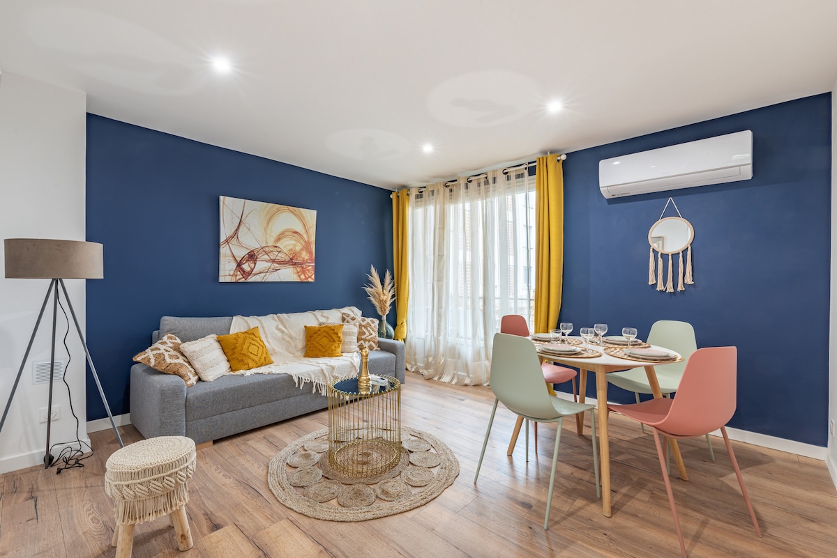 📍 Ideal location in the heart of Montpellier: 5 min from Saint-Roch station & Place de la Comédie! 🅿️ Private underground parking (€10/night) ❄️ Guaranteed comfort with air conditioning in summer 👥 Capacity: accommodates up to 4 travellers 🛋️ Large, bright living room + large, fully-equipped kitchen 🔇 Very well insulated from outside noise 🎥 Netflix included for your film evenings & chill out ☕️ Free tea & coffee! 🔑 Independent access 🧺 Linen, soap, bedding
