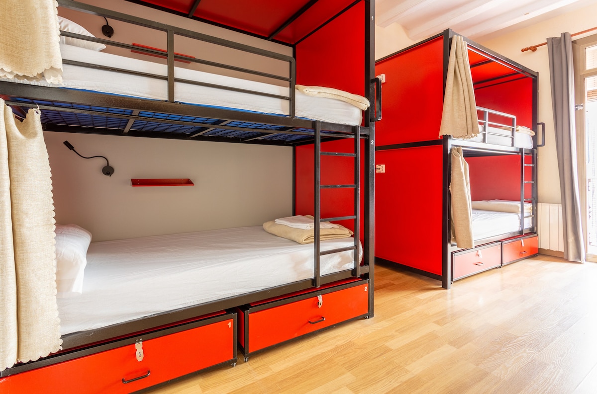 Bercuti ke penginapan butik kami yang cerah dan moden di Barcelona! Bilik persendirian untuk 4 orang ini mempunyai katil double, dua katil single dan patio persendirian berperabot. Nikmati akses kepada ruang rehat berkongsi dengan pendiangan, dapur yang lengkap dan teres yang luas. Sesuai untuk keluarga atau kumpulan kecil yang mencari tempat penginapan yang bergaya dan selesa untuk meneroka bandar. Alami penginapan unik yang menumpukan pada reka bentuk dengan kemudahan berkongsi yang cemerlang.