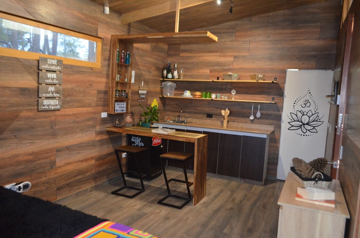 “Selamat datang ke tempat percutian yang direka untuk mereka yang ingin melepaskan diri sepenuhnya di pusat bandar Boyacá.” Di sini, alam semula jadi dan keselesaan dipadukan untuk menawarkan anda pengalaman yang tidak dapat dilupakan, membolehkan anda mengakhiri hari anda dengan berendam di Jacuzzi hidromasaж peribadi, sambil memandang langit yang paling berbintang di rantau ini. Apabila malam tiba, aroma perapian dalaman kami yang menenangkan dan pokok-pokok eucalyptus luaran kami mewujudkan suasana yang sempurna untuk berehat dan berkongsi detik-detik istimewa di bawah bulan.