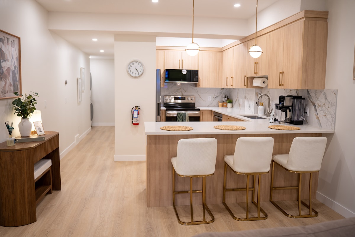 Alami kemewahan di suite bawah tanah bergaya kami dengan pintu masuk persendirian. Nikmati peralatan yang dinaik taraf, dapur penuh, katil raja, dobi dalam suite, dan kalis bunyi yang unggul. Bersantai dengan sofa power recliner, OLED TV (Netflix & Prime), dan internet 1Gbps. Cerah, luas, dan direka dengan teliti dengan stesen kerja dan ruang makan. Hanya 2 minit berjalan kaki ke transit— rempuhan adalah 20 minit jauhnya. Sesuai untuk penginapan jangka pendek atau panjang, berhampiran dengan semua kemudahan. Keselesaan anda menanti! Penghunian maksimum 2adult+1child