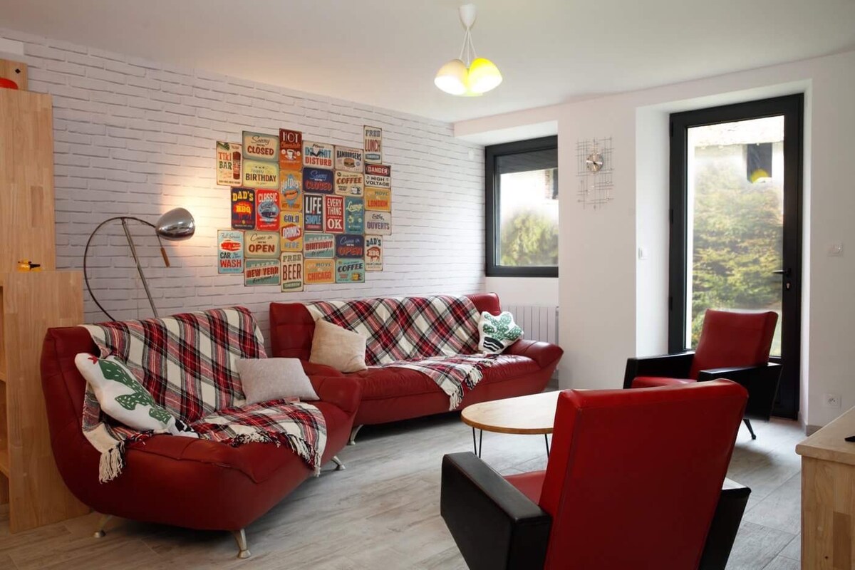 Dupleks hangat yang terletak di tengah-tengah A., bandar bersejarah Champagne ini, sesuai untuk merentasi laluan wain dan meneroka rumah-rumah berprestij di bandar ini atau pembuat wain yang luar biasa. Dari penginapan, seluruh bandar berada dalam jarak berjalan kaki: kedai roti, kedai runcit, rumah Champagne... Anda akan menemui dataran yang menawan di kaki penginapan yang membolehkan anda menikmati pastri terbaik di kawasan ini dan menikmati segelas champagne di teres!