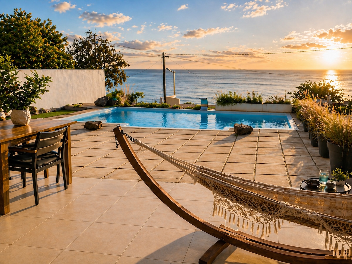Sunset Seaview Villa dengan kolam renang persendirian di Tamarin