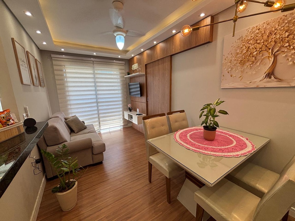 Apartmen ini semuanya dihiasi dengan standard berkualiti tinggi, semuanya baru dan moden. Sesuai untuk sewaan musim pendek dan ia sama seperti gambar. Ia mempunyai lokasi yang hebat, berdekatan ia mempunyai pasar raya, dobi, dll. Condomínio mempunyai kondominium 24 JAM, litar kamera di kawasan luaran dan kejiranan ini sangat tenang. Kami menawarkan seluruh apartmen: 2 bilik tidur, ruang tamu, dapur dan bilik mandi. Apartmen ini berada di tingkat 1, tiada lif, akses hanya dengan beberapa anak tangga.