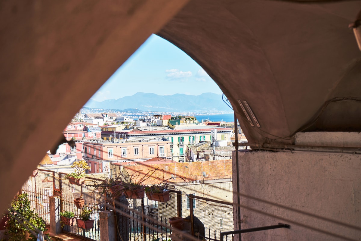 Experience a unique emotion in the stunning Suite with a panoramic terrace overlooking Vesuvius+Wine as a welcome gift.Mazzocchi is located a 3minute walk from the bus stop,close to the historic center,the central station,and the airport.Mazzocchi isn't just accommodation,it's an experience:we guide you through the city's beauty and the best traditional restaurants.The House is cozy,bright,with 4beds ,super equipped kitchen,elevator•FastWiFi,FreeParking orH24 secure parking.Transfer/tour service