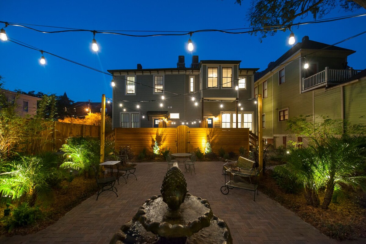 Di Forsyth Park dengan pemandangan. Studio yang selesa dan romantik sesuai untuk pasangan. Berjalan-jalan ke air pancut hanya dalam masa 2 minit dan nikmati rumah agam yang megah, restoran terbaik, dan segala-galanya yang ditawarkan di pusat bandar. Riverfront adalah 20 minit berjalan kaki yang mudah. Studio artistik ini mempunyai katil king, dapur lengkap, balkoni kecil dengan pemandangan taman langsung, dan meja makan halaman persendirian di bawah di taman bata yang subur di rumah kereta Victoria 1888. Tempat letak kereta tepi jalan percuma. (Tiada tempat letak kereta tepi jalan persendirian.)