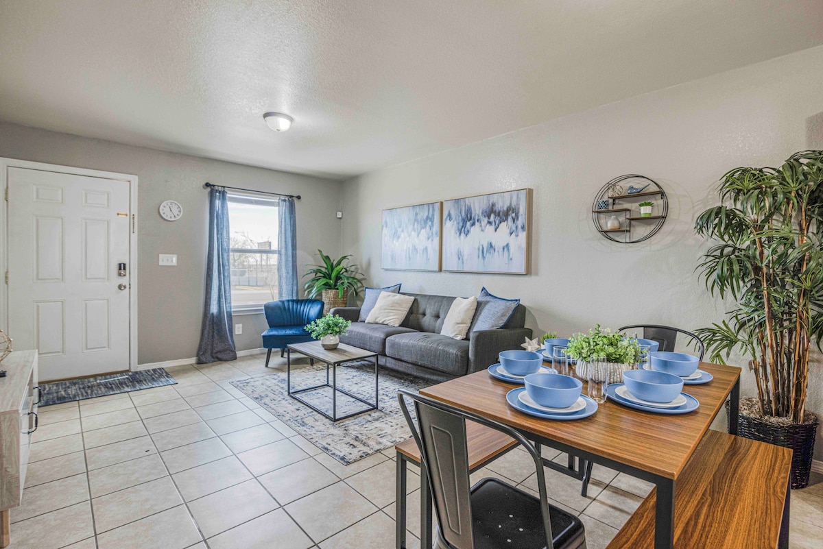 Terletak dengan sempurna di Central El Paso! Terletak berhampiran banjaran Franklin Mountain, Downtown El Paso, restoran hebat, arena sukan, beberapa hospital, pangkalan Fort Bliss Army, dan banyak lagi! Berhampiran dengan berbilang lebuh raya untuk akses pantas ke lokasi sekitar! - Baru diubahsuai - Dilengkapi dengan peralatan moden baharu - Mesin basuh dan pengering - Udara dan pemanas yang disejukkan - Katil queen yang selesa - Sofa tidur untuk menampung tetamu ke-3 atau kanak-kanak -Pack n’ play tersedia dengan bayaran tambahan mengikut permintaan