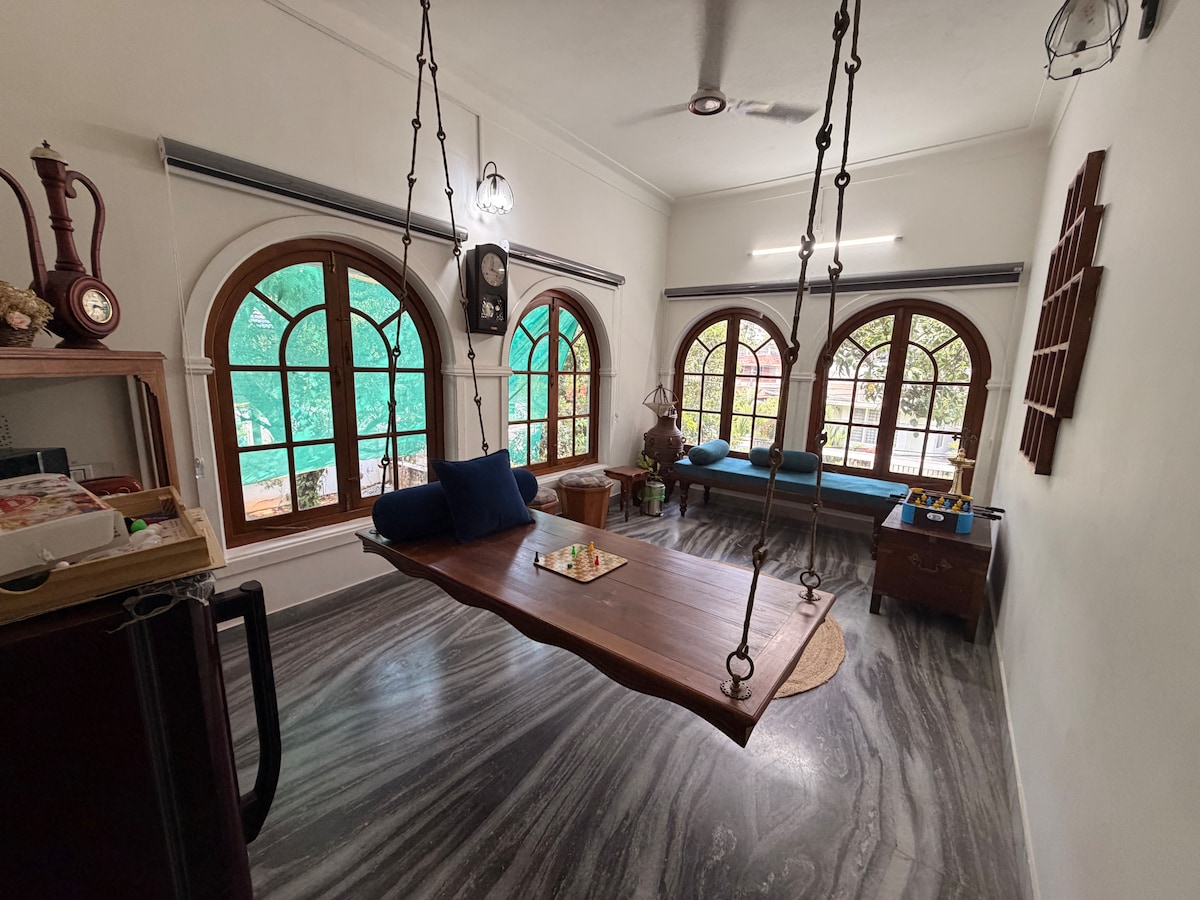 Nikmati angin laut sejuk dan berjemur di bawah cahaya matahari pagi di rumah The Island Kochi. Homestay yang luas ini mempunyai 2 bilik tidur (Kedua-dua berhawa dingin) yang boleh memuatkan 6 orang (Dua katil tambahan akan disediakan untuk dua tetamu tambahan) berhampiran dengan Kochi dan mempunyai sentuhan Kerala yang mengintip hiasannya. Tangga retro bergaya 1920-an adalah letupan yang indah dari masa lalu. Bilik tidur yang lazat dengan katil poster, perabot kayu dan hiasan kertas dinding yang elegan, menambah sentuhan kerabat diraja kepada suasana.