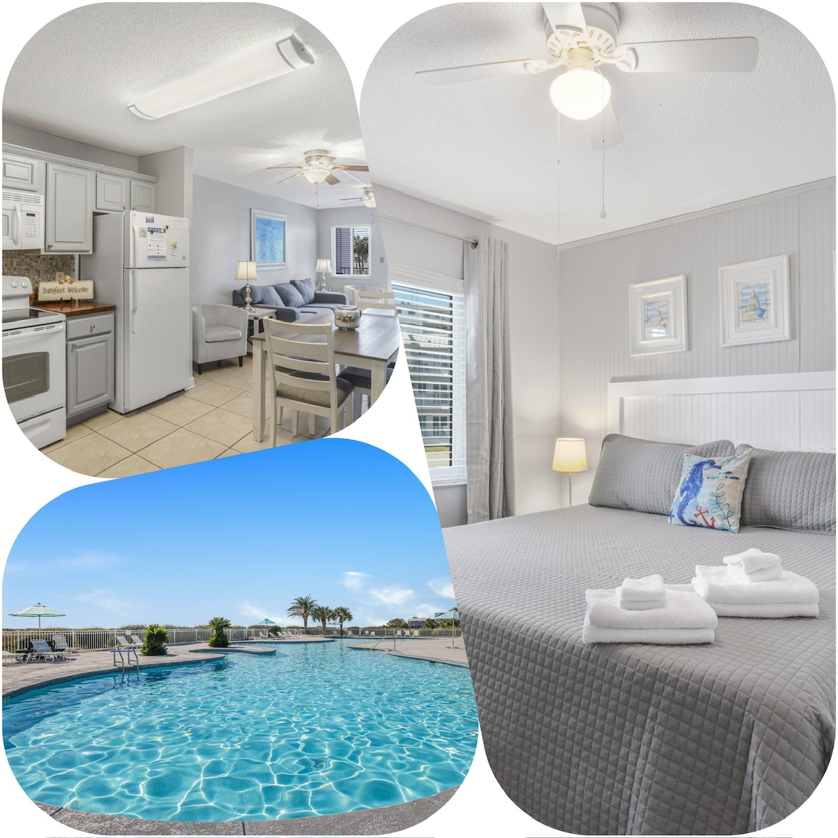 Kondominium Phoenix 10 yang diselenggara dengan teliti dan berperabot cantik ini merupakan lambang keanggunan dan kemewahan canggih untuk pasangan yang arif atau keluarga kecil yang ingin berehat dalam suasana resort pantai. Hirup kopi pagi anda di balkoni peribadi anda yang menghadap pantai dan Teluk Mexico. Terletak betul-betul di pantai! Tempat letak kenderaan tersedia daripada HOA dengan yuran $70. Kain linen, tuala dan pakej permulaan pelengkap (TP/tuala kertas, pencuci pinggan dan syampu disediakan). Umur minimum untuk menempah 25 tahun
