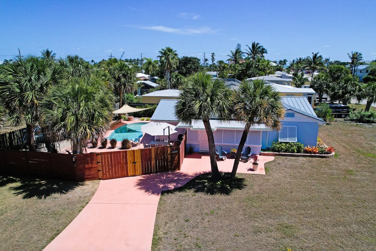 Everything is steps away! You can see the beach entrance from the driveway! No shared spaces! Walk to Jetty park, Jaycee park (w/playground), Ft Pierce Inlet (load your boat) or several amazing restaurants/tiki bars (like Square Grouper). After a day on the water head to the Beach House to jump in the pool or play with some yard games. Take a stroll or GOLF CART RIDE to the restaurant/tiki bar to have a sunset dinner! Lastly enjoy the fire pit around the pool under the Edison lights & stars!