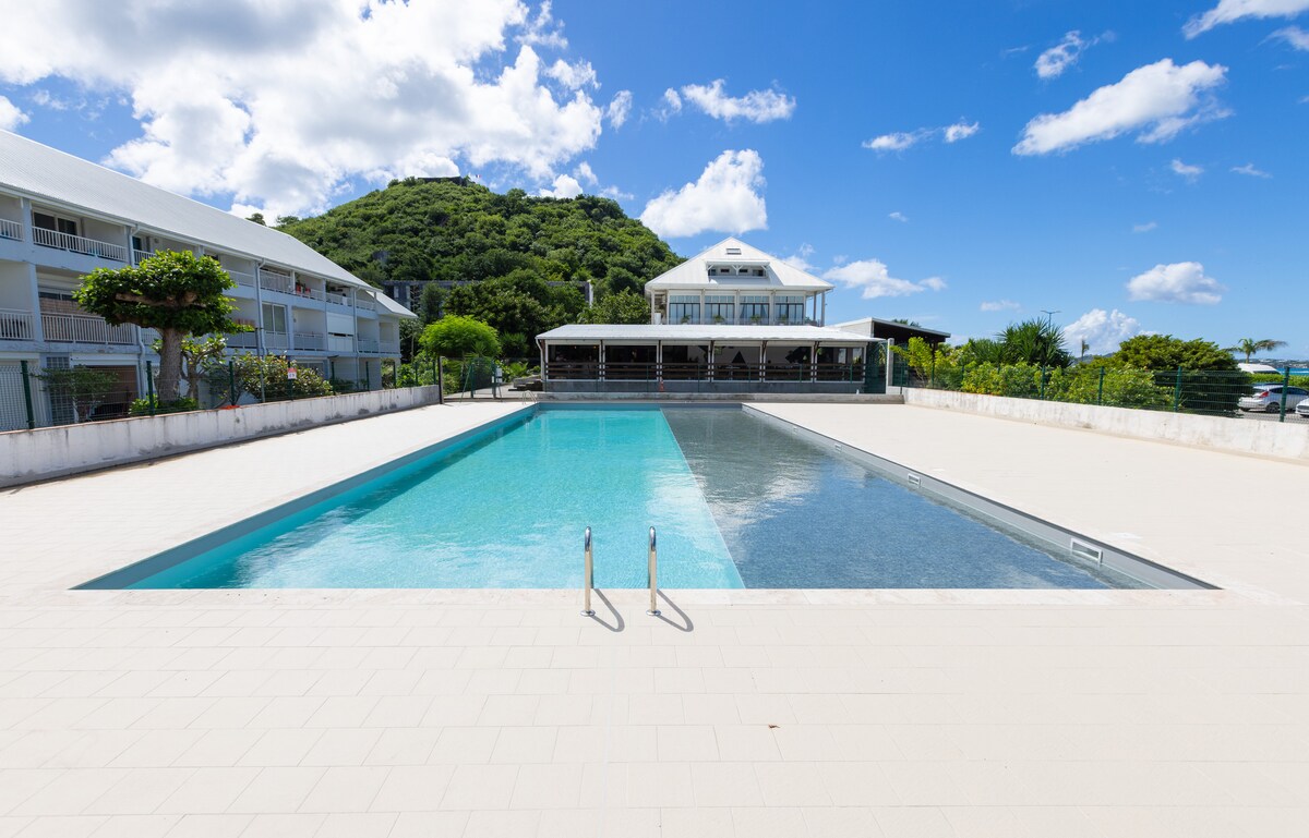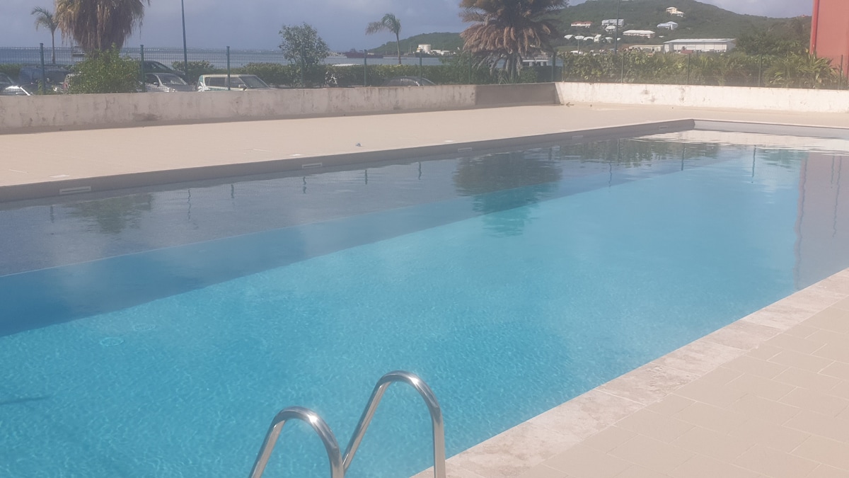 Bawa pakaian renang anda dan serahkan selebihnya kepada kami! Setelah bangun tidur, angkat bidai dan nikmati secawan kopi di balkoni. Apartmen studio anda hanya 1 minit berjalan kaki dari pantai Marigot atau anda boleh menikmati kolam renang yang terletak di kediaman. Anda akan dapat menikmati beberapa restoran, kedai kopi, kedai roti, pasar raya dan kawasan membeli-belah yang hebat dengan berjalan kaki sambil menghadap teluk marigot. Dengan peralatan pantai disediakan, TV pintar, pendingin hawa, dapur & katil yang selesa.. kenangan menanti untuk dicipta!