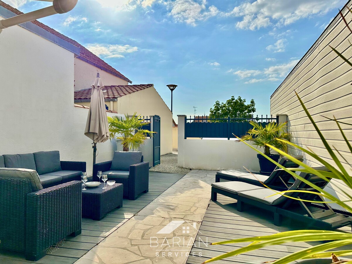 Selamat datang ke rumah keluarga saya! 800 m dari laut dan 1.4 km dari pusat, ia mempunyai taman berpagar dengan teres dan barbeku. Sesuai untuk keluarga, ia dilengkapi untuk bayi (katil bayi lipat, pembawa bayi, kereta sorong). Anda akan menemui bilik mandi moden, bilik tidur dewasa, bilik tidur kanak-kanak + katil payung, dua ruang tamu (dewasa dan kanak-kanak) dan dapur lengkap. Kejiranan ini sangat tenang, sesuai untuk berehat! Saya berbesar hati untuk menjadi hos anda.