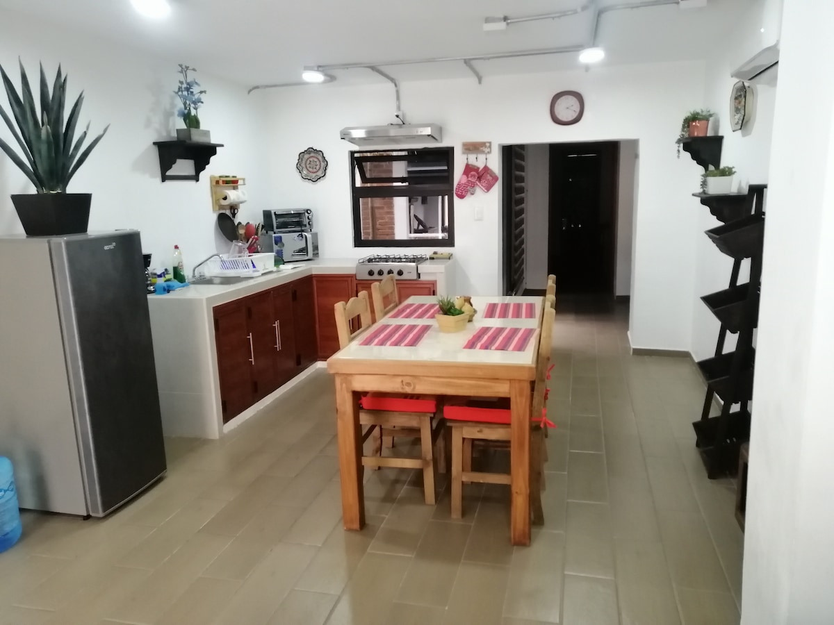 Nikmati kehangatan penginapan yang tenang dan berpusat ini. Kami mempunyai bilik tidur dengan katil kelamin, penyaman udara dan TV, ruang tamu-makan dengan dapur yang lengkap (peti sejuk dan dapur) dan tempat letak kereta untuk kereta sederhana. Kami terletak 5 minit berjalan kaki dari tarikan pelancong pusat bandar. (Paseo Colón,Paseo del Rio,Alameda, Kereta Kabel) Menginap di salah satu kawasan yang paling tenang dan paling selamat di Orizaba di mana anda akan menghabiskan petang yang menyenangkan dengan pemandangan kereta kabel yang indah.