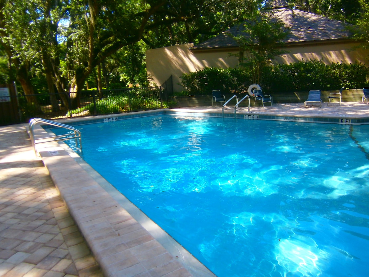 LIVE LIKE A LOCAL in your private, 2 room apt. under moss draped trees, at the center of beautiful Amelia Island! Our airbnbs are "conveniently secluded" amidst Amelia's gorgeous trees just 1 mile from the beach, and located on 1 of only 11 protected "canopy roads" in Nassau County! Mornings in your garden are dappled by tree-filtered sunshine & filled w/ birdsong. Afternoons/evenings are draped in shade and frequented by the sounds of pileated woodpeckers & barred owls! Come and enjoy! 😀