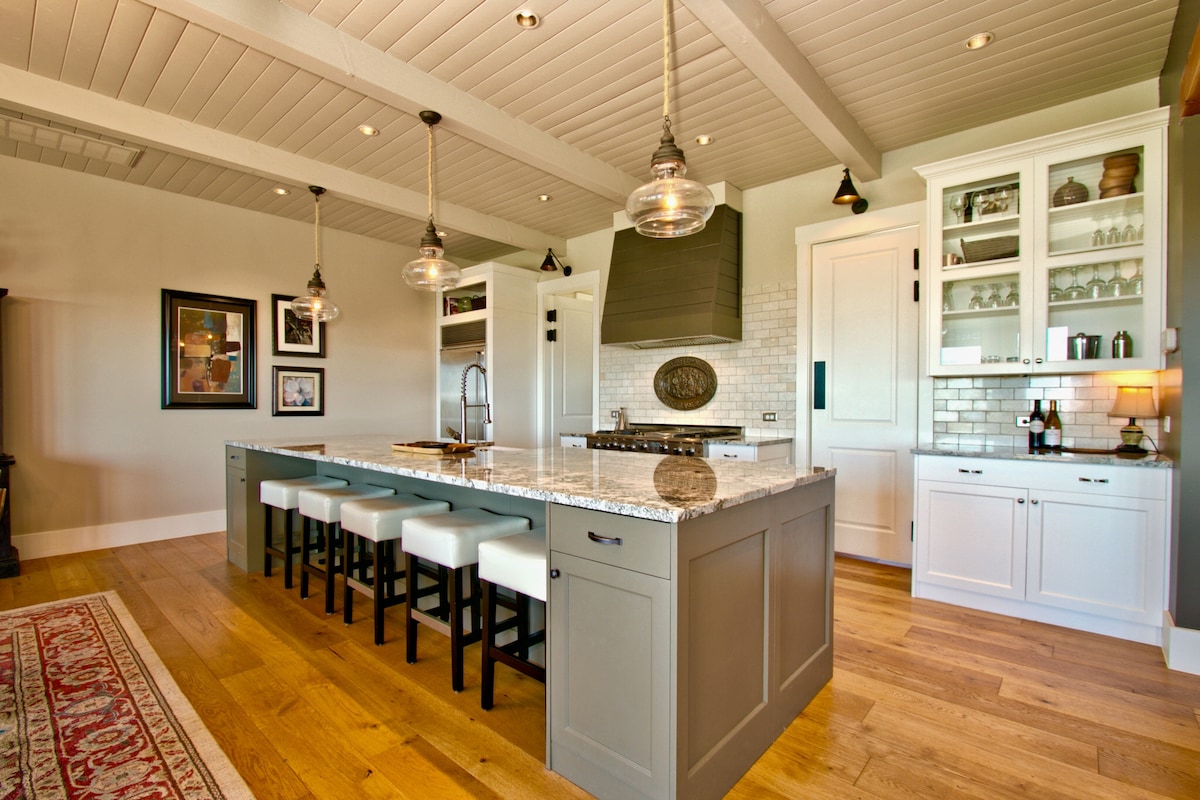 Terletak di atas tanah seluas satu ekar, 1½ blok dari Main Street, Abby 's Place adalah tempat percutian anda yang damai beberapa minit dari pusat bandar. Bilik tidur berasingan & tinggal rm di setiap suite. Katil king di Suite 1 & 3. Queens in 2, 4 & 5. Queen sofa tidur & TV di setiap 5 ruang tamu. Perabot antik di seluruh. Suite 3 mempunyai TV 65”, pendiangan, bilik senaman, dapur besar dengan ketuhar double & ruang makan ke tempat duduk 14. Gril propana, 2 lubang api pembakaran kayu & kincir angin. Suite 1-3 disambungkan. Suite 4 & 5 berada di belakang.