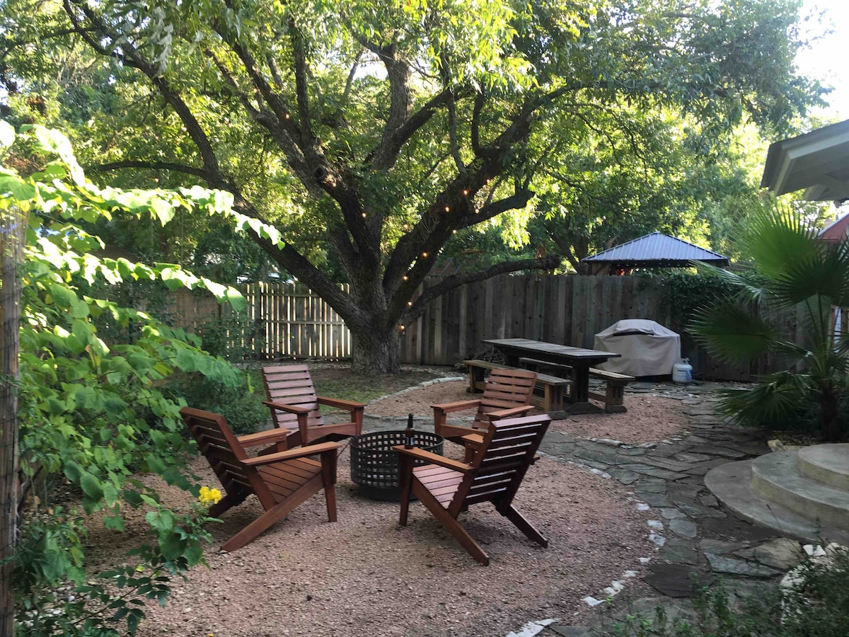 Kondominium yang selesa ini hanya beberapa minit dari pusat bandar Fredericksburg, mudah diakses ke restoran, kilang wain, kedai, tempat muzik yang menyeronokkan dan kilang bir tempatan! Ia adalah percutian yang sempurna untuk pasangan atau keseronokan dengan rakan-rakan! Bersantai di patio, pandang bintang-bintang, dan nikmati minuman di tepi api. Ruang ini diilhamkan oleh suasana muzik langsung Austin. Dapatkan inspirasi untuk menulis, bermain, menjadi kreatif dan berseronok dengan piano atau gitar. Kondominium ini berundur daripada kesibukan kami, jadi berehat dan nikmati penginapan anda di Bestos!
