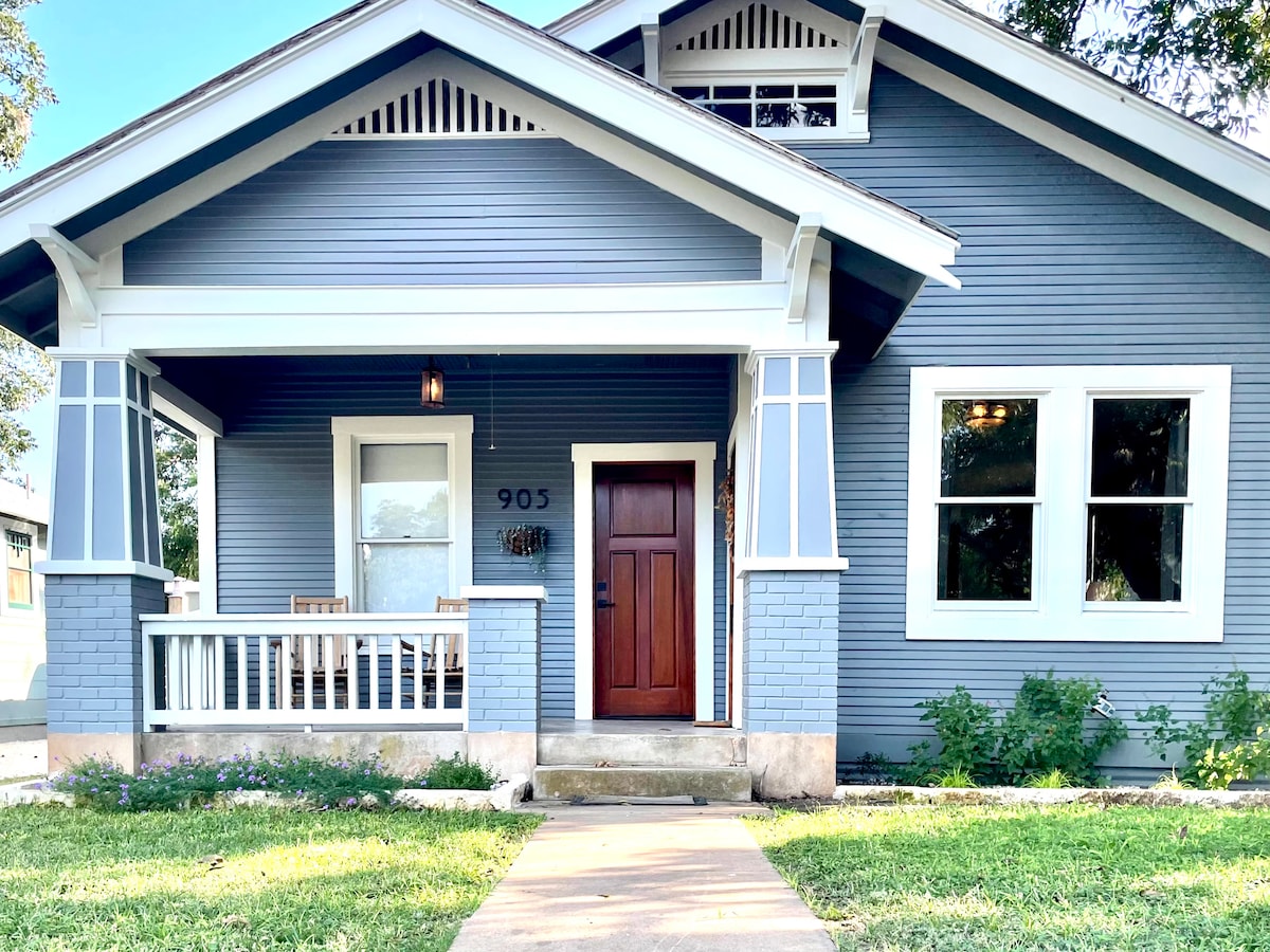 Penyenaraian BARU oleh Superhost berpengalaman! Terletak hanya setengah batu dari pusat Main Street Fredericksburg, Kaye Haus adalah rumah bergaya yang dibina dengan kemewahan dan keselesaan dalam fikiran. Rumah ini termasuk 2 bilik tidur besar dan 2 bilik mandi yang luas. Ruang tamu menampilkan pendiangan gas batu yang cantik dan mantel mesquite buatan tangan serta sofa tarik keluar bersaiz queen. Bersantai di tab mandi air panas peribadi anda, nikmati kopi anda di patio belakang persendirian atau masak di dapur baru dengan pulau besar.