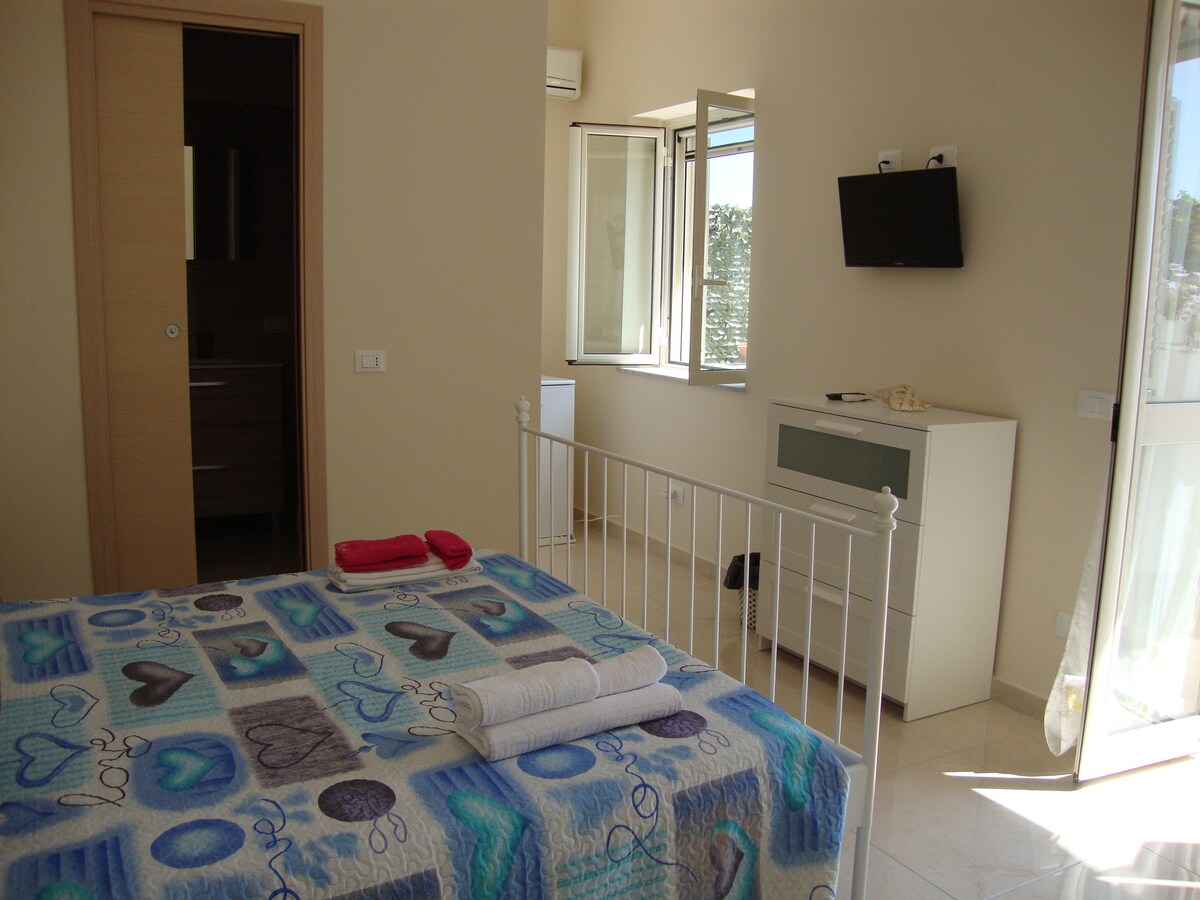 Comode camere con bagno che si affacciano su una veranda che domina il piccolo golfo. Due camere con bagno e veranda sul mare. Quando vi affaccerete dalla luminosissima veranda davanti al vostro letto, per godere del paesaggio e degli orizzonti del Mediterraneo.