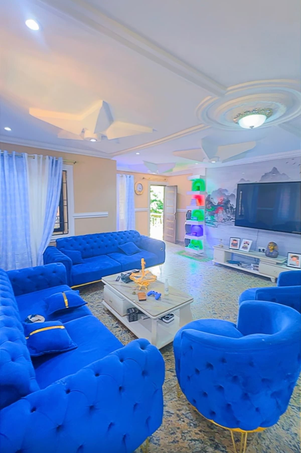 Forget your worries in this spacious and serene space. Tastefully decorated and fully furnished modern 3 bed house with scenic mountains views Perfect for: Remote workers, expats, travelers, and business visitors. Wi-Fi Guest Toilet AC Utensils Solar power Spacious parking Security guard CCTV Electricity Please note that Havillah Court is located on top of a hill but is accessible via a paved road from the main highway. You need a good car that can climb hills.