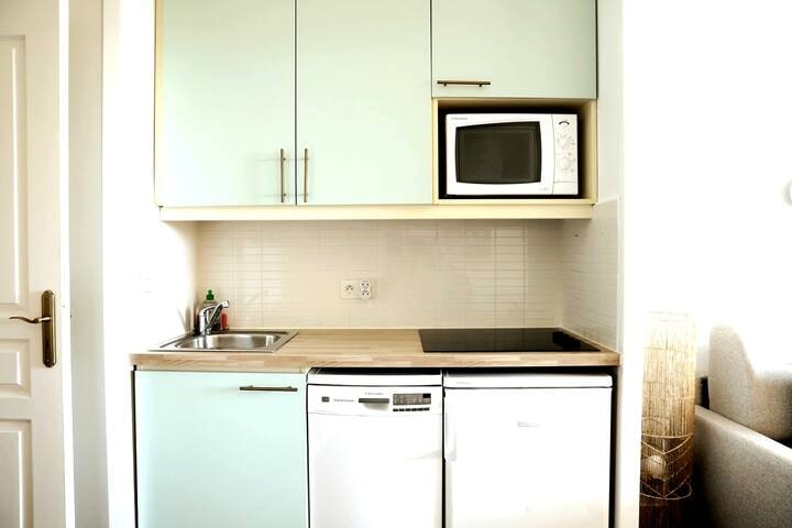 Sudut malam dengan katil kelamin. Ruang tamu dengan katil sofa 140 cm. Bilik mandi dengan pancuran mandi, mesin basuh. Dapur kecil Wifi. Climatisé. Semua linen disediakan. Pinjaman katil payung, tab mandi bayi dan kerusi atas permintaan secara percuma. Boleh menampung 2 orang lagi atas permintaan. Caj tambahan tarif N untuk kanak-kanak. Ia terletak 700 m dari pesta dan istana pantai. 500 m dari stesen kereta api Cannes dan 300 m dari pasar Forville dan tempat letak kereta persendirian Suquet