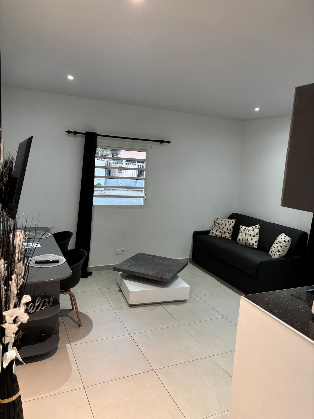 Studio individu di atas keutamaan 1000 m2 , kawasan kediaman, teres berperabot dengan barbeku, pemandangan laut, tempat letak kereta persendirian 5 minit dari Cayenne dan pusat membeli-belah MONTJOLY. Kemudahan: TV (saluran SAT) Wifi, dapur lengkap