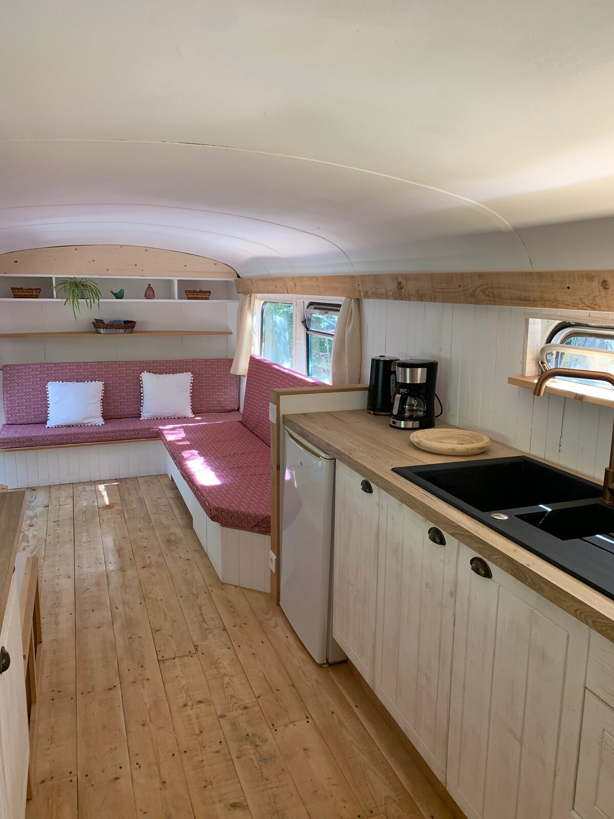 sewaan penginapan luar biasa Bas Imperial British 1957 di tengah-tengah alam semula jadi di Taman Semula Jadi Serantau Verdon, berhampiran dengan Lac de Sainte Croix dan Verdon Gorges. Ruang parking persendirian untuk kenderaan. Teres berbumbung. Terdapat banyak haiwan ( anjing, kucing, kambing, ayam). Ruang tamu tingkat bawah dan dapur, bilik tidur dan bilik mandi yang lengkap. Termasuk cadar dan tandas. Pasangan ideal, hingga 3 orang. Koordinat GPS: 43.80534800, 6.14345700.