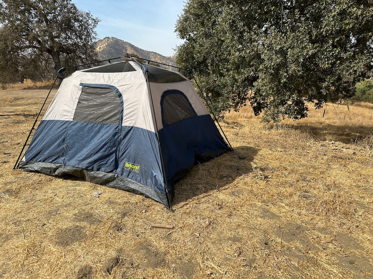 Datang dan alami perkhemahan mewah yang terbaik! Terletak di antara pokok oak, dengan pemandangan lembah dan bukit hanya 28 minit dari Kings Canyon NP, tapak perkhemahan kami menampilkan katil Tuft-and-Needle yang luar biasa, dapur luar, kerusi anti-graviti, penyejuk sejatan untuk malam musim panas yang panas, pancuran mandi mewah dan pemandangan yang indah. Cium aroma cedar semula jadi dan nikmati pemandangan bintang-bintang semasa anda menggunakan pancuran mandi tanpa bumbung kami. BBQ sesuatu yang istimewa selepas seharian di taman, dengar burung, dan berehat!
