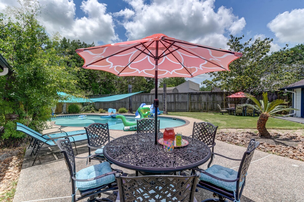 Bersantai, berehat dan segarkan diri. Nikmati suasana musim panas di sini! Kolam renang dalaman memberikan anda privasi peribadi dan perlindungan daripada matahari. Bilik mandi dan pancuran mandi boleh didapati betul-betul di dek kolam renang. Rumah moden ini adalah gabungan semangat dan ketenangan yang sempurna. Halaman belakang menawarkan banyak ruang untuk makan di luar dan permainan. Hanya 15 batu dari Downtown Houston, Kemah Boardwalk, dan NASA.
