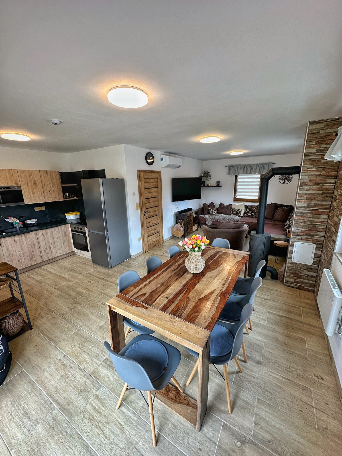 Seluruh keluarga atau kumpulan rakan-rakan anda akan berseronok di penginapan bergaya ini. Bangunan ini menawatan yang selesa untuk sehingga 17 orang. Vila Dvorečná terletak di pinggir perkampungan Dvorečná, kira-kira lima minit dengan kereta dari lereng ski di Lipno nad Vltavou. Bangunan ini mempunyai tiga tingkat dengan dua teres, pemanggang, tempat api, kolam renang luar berbumbung dengan arus balik dan pusat kesihatan dalaman dengan sauna dan tab mandi air panas. Kami menyewakan keseluruhan bangunan. Jika anda mengembara dengan anak-anak kecil, anda boleh meminjam katil bayi, kerusi makan atau tab mandi.