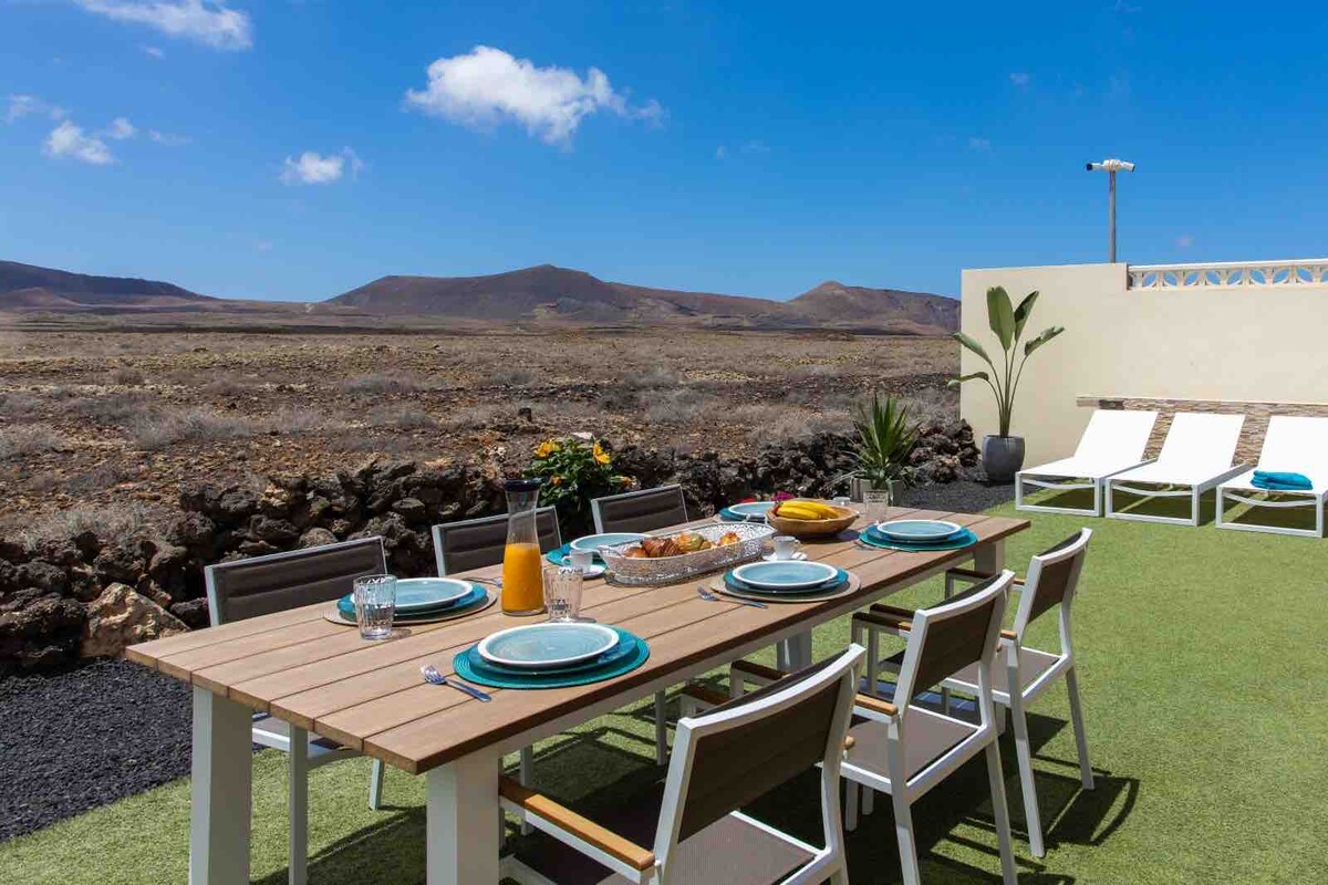 Ketenangan mutlak, pemandangan yang luar biasa, vila yang menakjubkan. 250 m dari pusat Lajares. Berhampiran dengan pantai Corralejo dan El Cotillo. Kami memanaskan kolam renang dari November hingga Mei. Perhatian. Sila isikan jumlah tetamu yang betul dalam carian anda, harga berbeza untuk 2, 3, 4, 5 atau 6 tetamu.