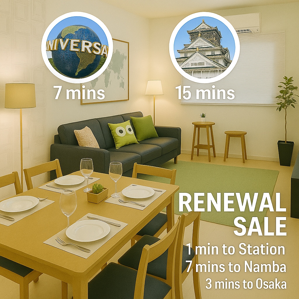USJ7分・難波7分!駅1分の好立地で大阪観光に最適 一棟貸し