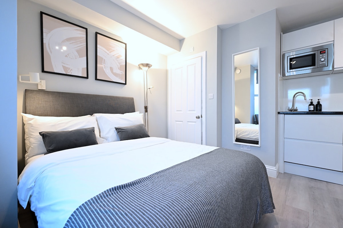 Flat 1 bilik tidur yang menawan dengan Katil King & Pemandangan Taman